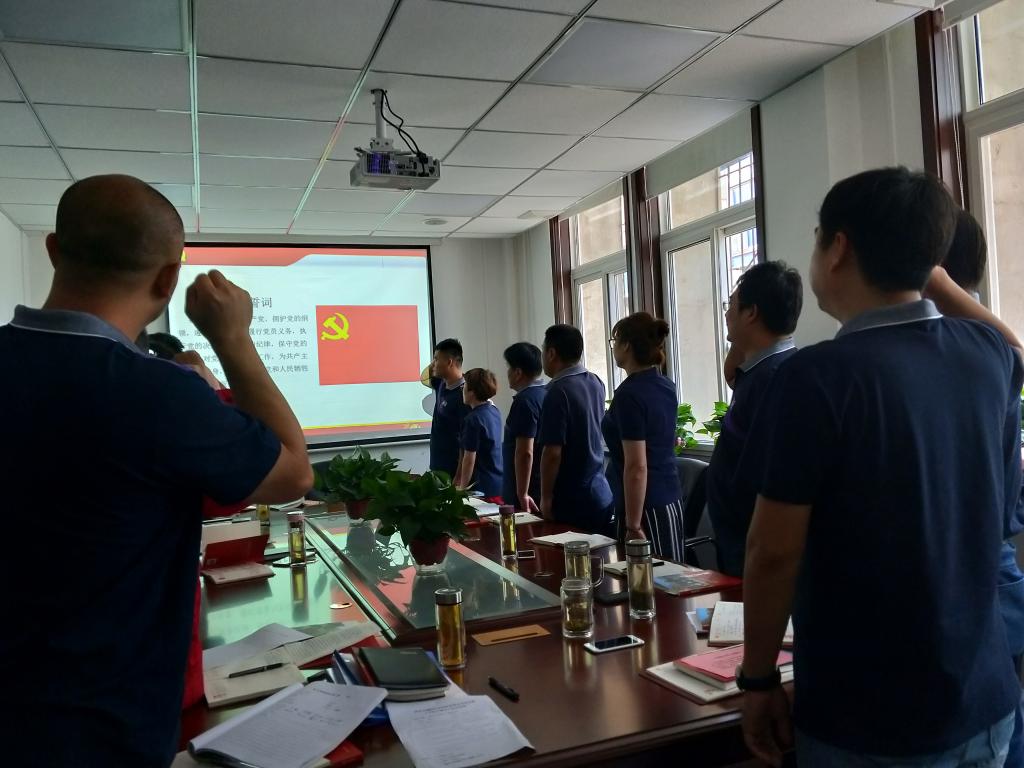 党课前,张经理带领全体党员重温入党誓词,组织党员对《梁家河》节选《农民变身上班族》《生病不在硬扛》进行诵读。