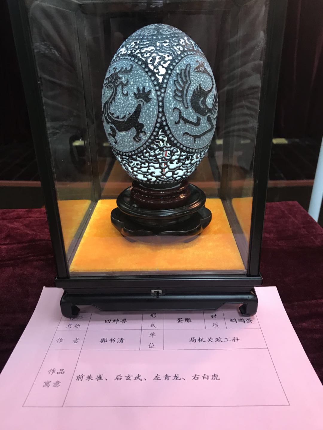 此次手工艺作品展得到了全局广大干部职工、职工家属的积极响应,共征集到各类作品200余件。有面塑、剪纸、蛋雕、香包、插花、编织作品、纸艺、布艺、脸谱等,种类齐全,风格多样。市政职工“蛋雕达人”郭书清提供了14件蛋雕作品,其中以“中国梦”为主体的蛋壳套雕体更是寓意了新时期中国梦如龙腾飞。